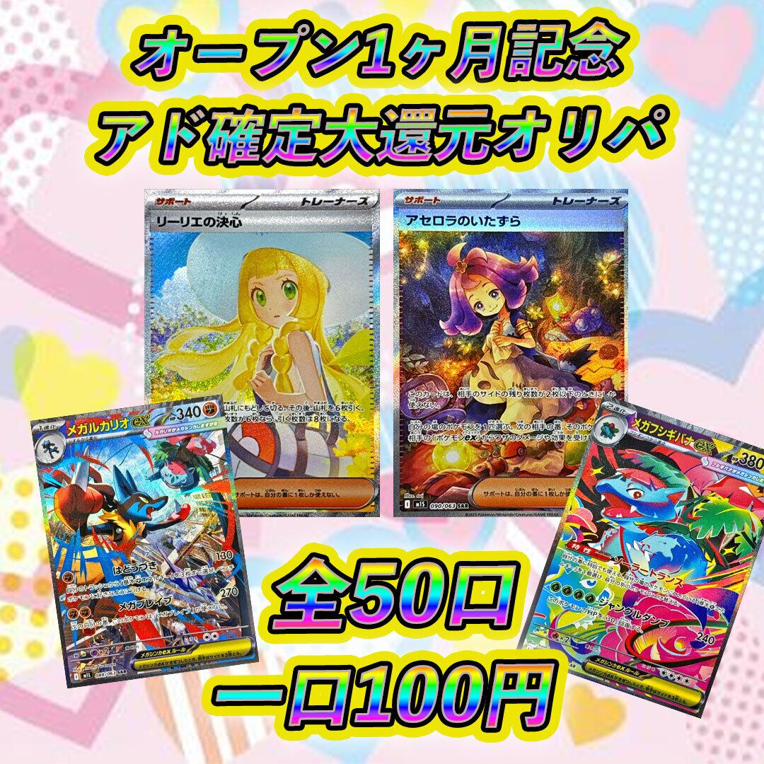 ポケモンカード オープン記念1ヶ月記念 【アド確定大還元オリパ】